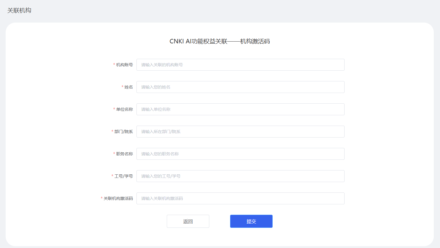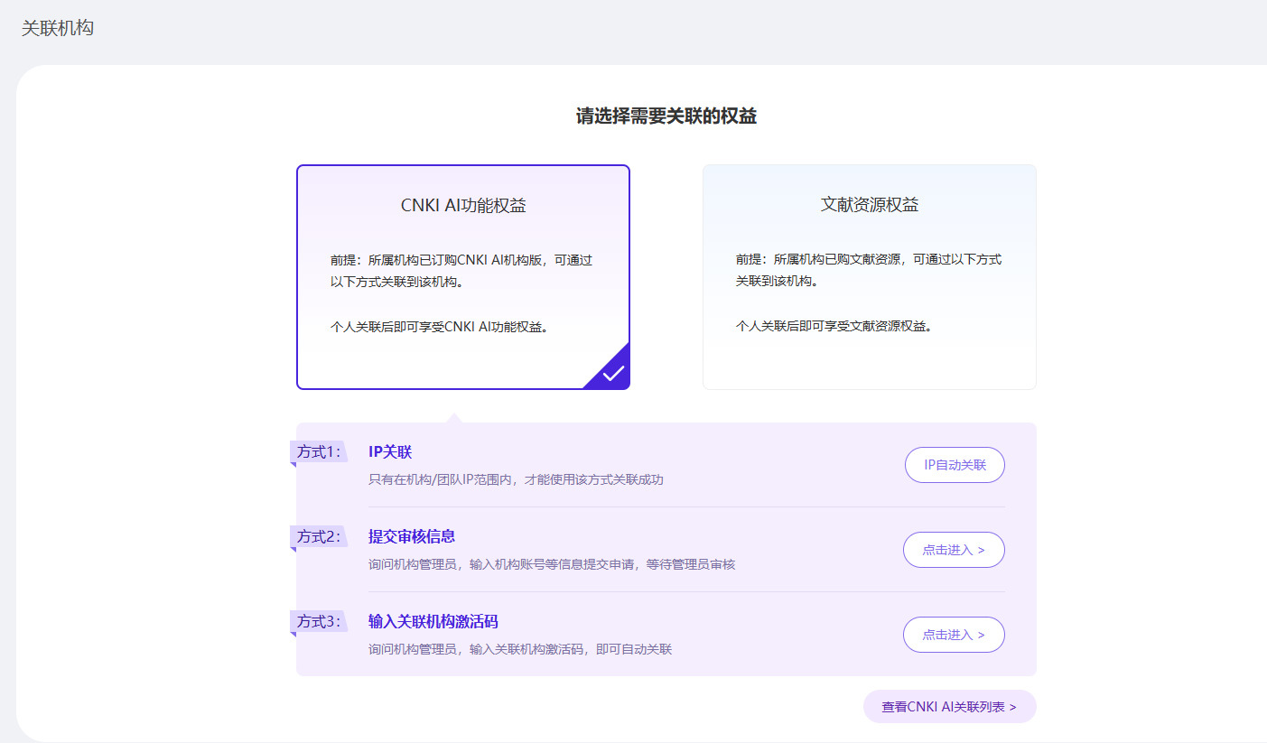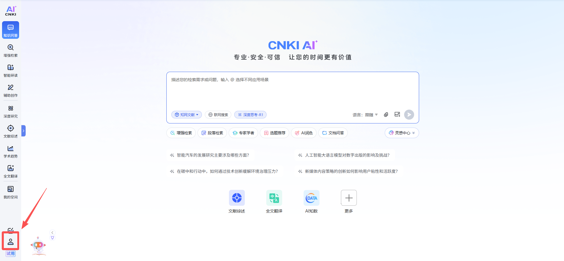 在科技日新月异的今天,人工智能大模型的应用正在给工作、科研和学习等方面带来深刻变革。为进一步加强人工智能工具应用能力,提升学术研究、工作学习的效率和质量,经与中国知网深入沟通,我校图书馆现已开通CNKI AI产品及学术期刊的试用服务,欢迎广大师生试用体验! 试用时间:即日起-2025年12月31日 产品介绍 CNKI AI,是中国知网全面拥抱AI,赋能知识服务的全新探索,是推进问答式增强检索和生成式知识服务的场景实践。平台基于AI技术驱动的专业知识+深度思考、可信增强+可控生成的智能化服务,全面融合AI学术研究助手和AI增强检索,理解更加精准全面,解答更有专业深度,构建人工智能时代学术研究、科技创新、科学决策、全民阅读和人才培养的新范式。 产品功能 知识问答——精准溯源,可信可控 全面分析与理解用户的问题,在知网全库范围内寻找最为贴切的答案,提供个性可控的生成服务,内容来源可追溯,确保结果权威、真实、可信。 增强检索——语义驱动,范式革新 将大模型的自然语言处理和语义理解能力融合于信息检索中,以自然语言方式检索文献和文献原文段落,实现从传统基于关键词的检索到基于语义向量的检索范式革新。 智能研读——深度解析,知识提效 提供单篇问答、文章伴读、专题问答等服务,帮用户梳理脉络、提炼精华,快速获取文献中的关键信息,知识吸收变得轻松高效。 辅助创作——可信参研,智能协同 AI辅助创作形成研读写作完整闭环,从灵感激发到成文定稿,智能伴写、对话创作、润色批改等智能服务全程陪伴,使创作成果语言更精准,逻辑更清晰,内容更规范。 使用步骤 1、登录 登录知网首页www.cnki.net,切换至CNKI AI进入;你也可以直接输入https://ai.cnki.net/进入。 2、登录并关联账号 操作步骤:登录已注册的知网个人账号,点击左下角个人中心——展开——关联机构,选择AI功能权益。 方式一:IP关联 只有在机构/团队IP范围内才能使用该方式关联成功。 如还未注册知网个人账号,请先在知网首页或知网AI登录页注册账号,使用过程中如有问题,可与图书馆咨询。 方式二:扫码关联 微信扫描二维码,登录知网个人账号,绑定AI助手机构主账号方可获得使用权益。 3、绑定成功即可使用